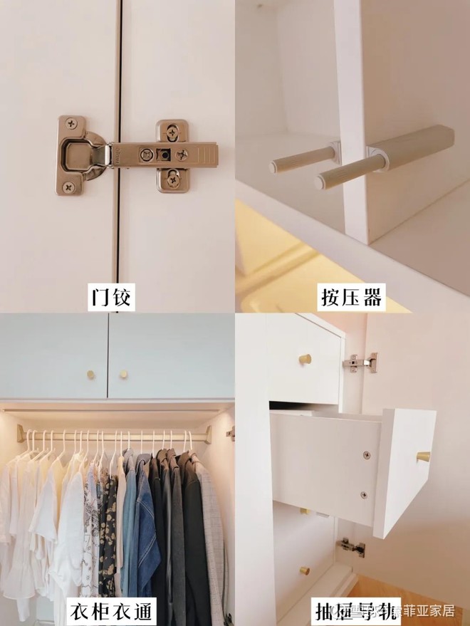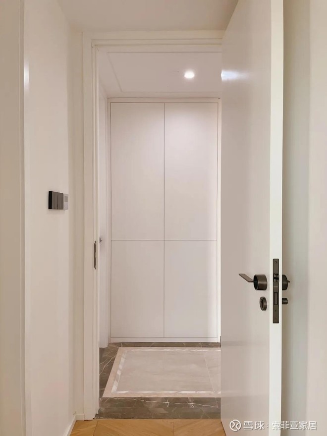 之前业主有朋友装修,只看颜值了,没注意五金等小细节,定做的柜子一开门就吱吱作响,用没一年门铰就松了,体验感大打折扣。这次业主特地留意了五金件的细节。索菲亚的五金件通过了瑞士SGS测定,符合欧洲标准,多年来出口欧洲,品质过硬,体现最明显的就是开关门很静音,滑轨也很顺畅。业主用了一段时间,感觉非常不错。