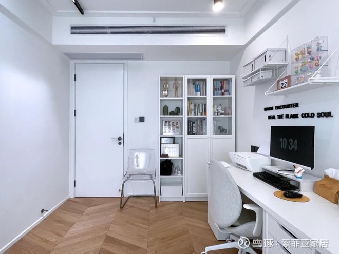 由于业主经常在家办公,也时常需要在家进行各种风格的场景的拍摄,她希望整体家居风格是简洁百搭,通过更换软装,可以呈现出一年四季的不同主题,就像一个新家。为此,设计师花了不少心思,最终为她选择了现代极简的风格,全屋柜类使用了索菲亚华尔兹系列,臻白色简洁百搭,哑光肤感日常居住感舒适温馨,出图质感非常高级,能满足她对生活和工作的双重需求。