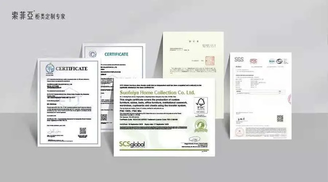 一直专注环保、勤练内功的索菲亚也获得了众多权威机构的认可,包括全球 FSC 森林认证、日本 F★★★★ 认证、美国CARB NAF和EPA NAF无醛豁免认证以及通过瑞士SGS测评这五大国际环保认可,成为五大国际认可率先获得者。