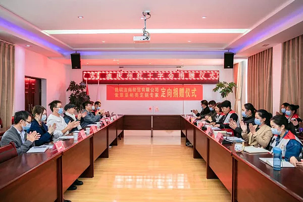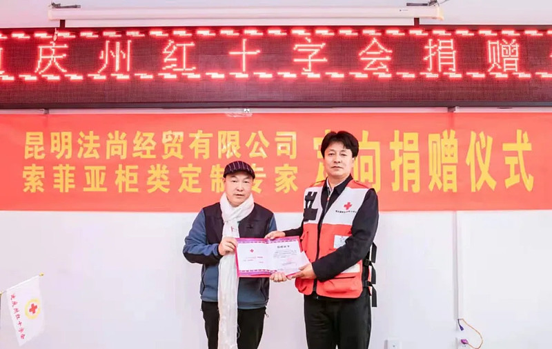迪庆州红十字会常务副会长李涛讲:索菲亚柜类定制专家联合索菲亚昆明代理商昆明法尚经贸有限公司通过州红十字会向香格里拉第一中学定向捐赠价值490000.00元的桌椅2000套和价值117800元的索菲亚定制书柜15套,这是一项得民心、顺民意的公益行为,是“我为群众办实事”的具体实践活动,这为进一步动员社会各界参与助力教育事业起到良好的示范作用。