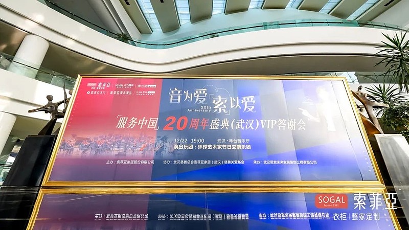 12月22日,由索菲亚家居集团主办,武汉市慈善总会索菲亚家居(武汉)慈善关爱基金协办,武汉思索未来家居装饰工程有限公司与湖北广播电视台承办的主题为【“音”为爱,“索”以爱之索菲亚服务中国20周年音乐会】于琴台音乐厅(武汉)圆满落幕。